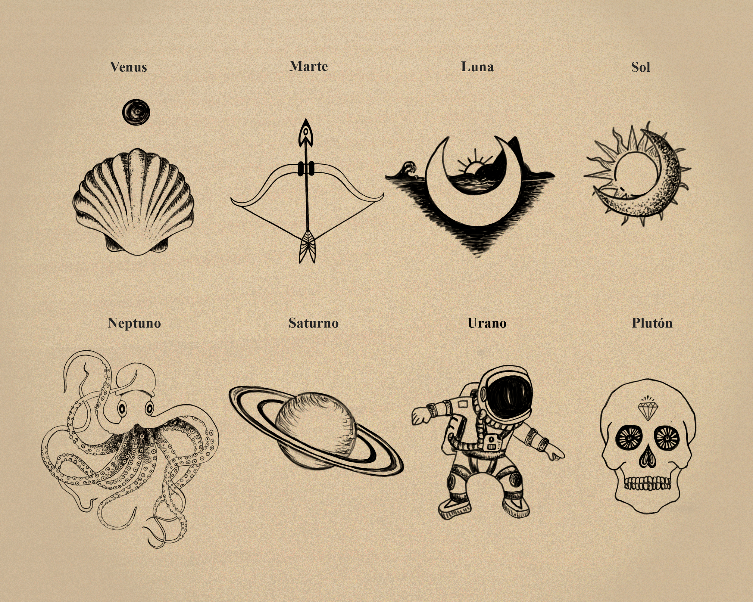 En esta combino la lectura la carta astral con la marca en la piel. La realizo de diversas formas, o a partir de un símbolo, número o planeta, en cuyo caso se tatua el diseño escogido. A partir de este símbolo leo tu carta y dirijo la conversación durante el proceso de tatuar. Es un forma de terapia, la marca en la piel servirá para recordar la conversación a través de un símbolo de poder.